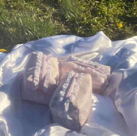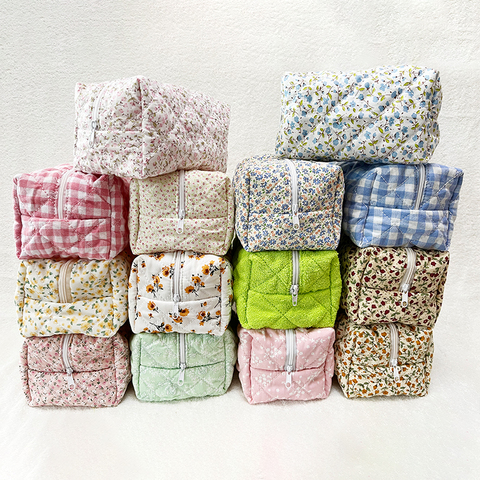 Borsa per il trucco in cotone trapuntato con Mini fiori carini