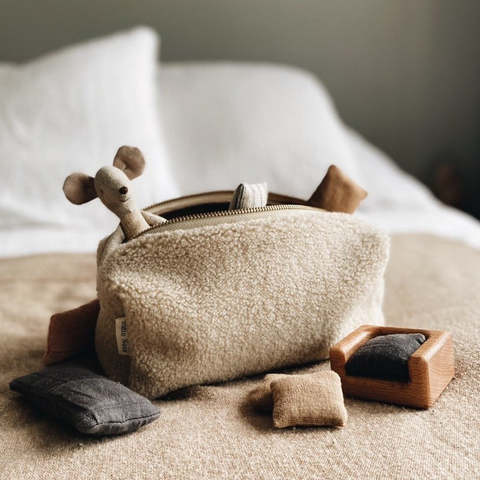 2023 primavera Logo personalizzato peluche cerniera Sherpa trucco sacchetto moda donna Teddy morbido peluche sacchetto cosmetico